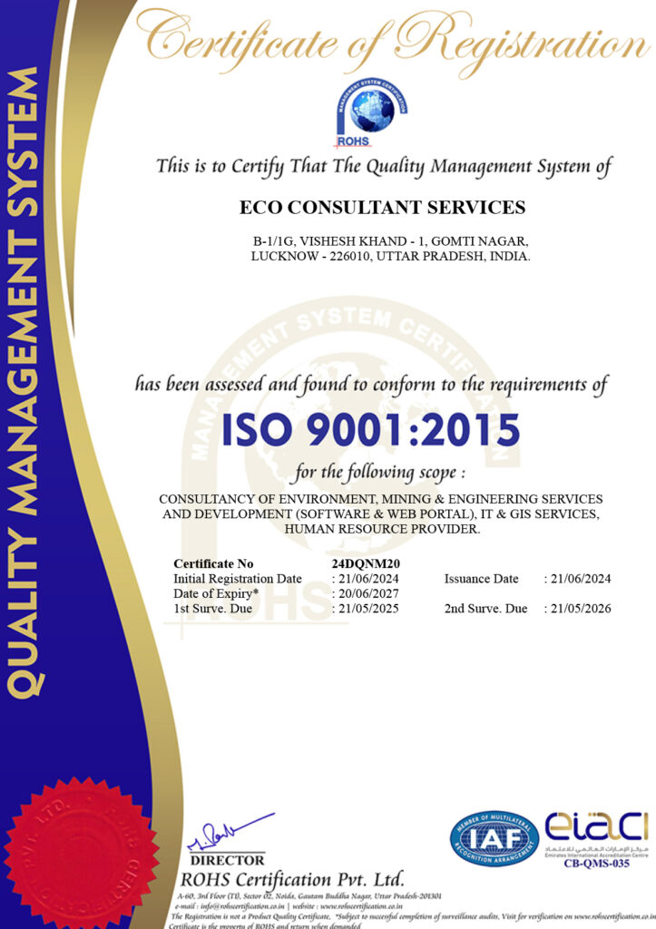 M/s Eco Consultant Services established in the year 2008, Eco Consultant Services is ISO 9001:2015 certified organization. ECS is promoted by Dr.ShashakShekhar Mishra a professional with 18 years of experience in environment sector. ECS is a leading Consulting firm in India.